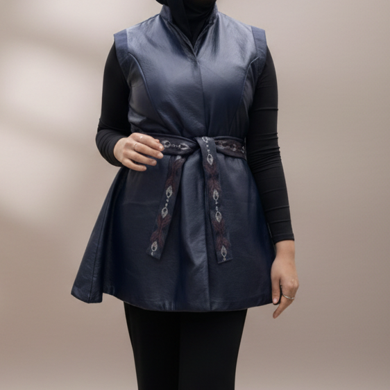 من الجلد كحلي مع الحزام
